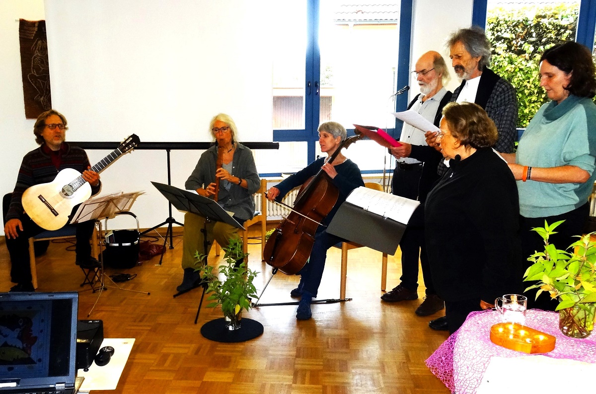 Umrahmt wurde die Tagung von einem wunderbaren, gehaltvollen und ausdrucksstarken musikalischen Programm, dargeboten von Gabriele Lang (Gesang und Cello) und Bernd Geisler (Gitarre). Unterstützt wurden sie dabei von Mitgliedern der bundesweit aktiven Gruppe "Lebenslaute Süd", die für ihre gewaltfreien, musikalischen Aktionen bekannt ist. Den Schwerpunkt bildeten dabei Auszüge aus der Mauthausen Kantate von Mikis Theodorakis. Julia Kramer moderierte die Tagung.