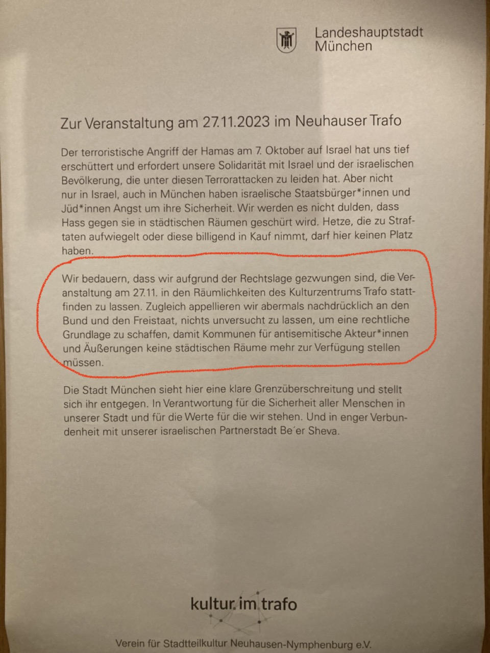 Dies ist offensichtlich reine Hetze gegen einen integren jüdisch-israelischen Gelehrten, eine akademische Persönlichkeit von höchstem internationalem Rang, deren einziger "Fehler" es ist, Israels Politik und damit Deutschlands "unverbrüchliche Solidarität" nicht gutzuheißen. Stattdessen spricht Ilan Pappe in höchst verständlicher und verdaulicher Form als Humanist, als Sohn von Holocaustüberlebenden, als Wissenschaftler und argumentiert mit historischen Fakten und Analysen. Über 200 vorwiegend junge Menschen lauschten begeistert - keine Fahne wurde geschwenkt, keine Parolen gegrölt, kein Hass geschürt. Vor der Türe hatte sich aber Polizei mit mehreren Einsatzwagen positioniert, ebenso wie ein paar Aktivisten von "München ist bunt", die leider nicht zu überzeugen waren, sich Pappe im O-Ton anzuhören, anstatt wilde Behauptungen aufzustellen, von wegen er "rechtfertige die Taten der Hamas". Ich möchte Dir hier zwei Briefe weiterleiten von Männern, die den bewaffneten Kampf kennen. Ihre Erfahrungen als Kämpfer, Terroristen und Soldaten haben sie gelehrt, dass es andere Wege geben muss. Die einen sind Israelis von Breaking the Silence - Soldatinnen und Soldaten, die nach ihrem Wehr- und Reservedienst ihr Schweigen brechen über ihre Aktivitäten als Besatzungssoldaten. Viele von ihnen sind keine Pazifisten, weil sie grundsätzlich die Armee zur Landesverteidigung als sinnvoll erachten. Die anderen kommen von Combatants for Peace - einer israelisch-palästinensischen Initiative, die Kämpfer beider Seiten vereint, weil sie sich entschieden haben, ihre Waffen abzulegen. Mich überzeugen ihre Argumente. Nicht erst seit dem 7. Oktober, aber jetzt noch viel mehr. Denn was durch Krieg und Gewalt in den Kindern in- und außerhalb Gazas an Trauma und Hass gesät wurde, wird sich ohne eine gerechte Lösung für alle spätestens in ein paar Jahren in ein Vielfaches an Gewalt und Hass wiederspiegeln. Es ist unser aller Verantwortung, diese Katastrophe nicht zuzulassen.